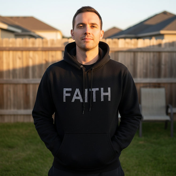 Embrace your faith with a subtle sparkle that catches every eye. Our mid-weight hoodie pairs cozy brushed fleece with dazzling rhinestone lettering for warmth and inspiration on any day.